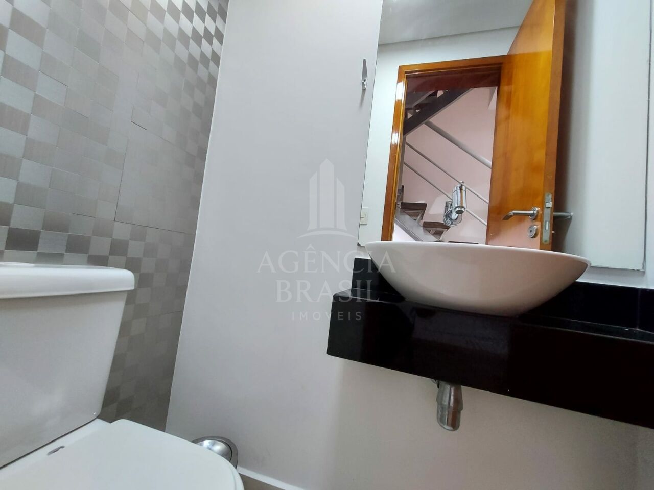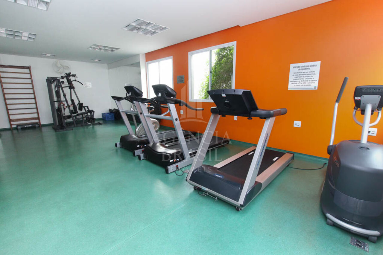 O lazer no condomínio, tem piscina, playground, salão de festas. A portaria é 24 horas.