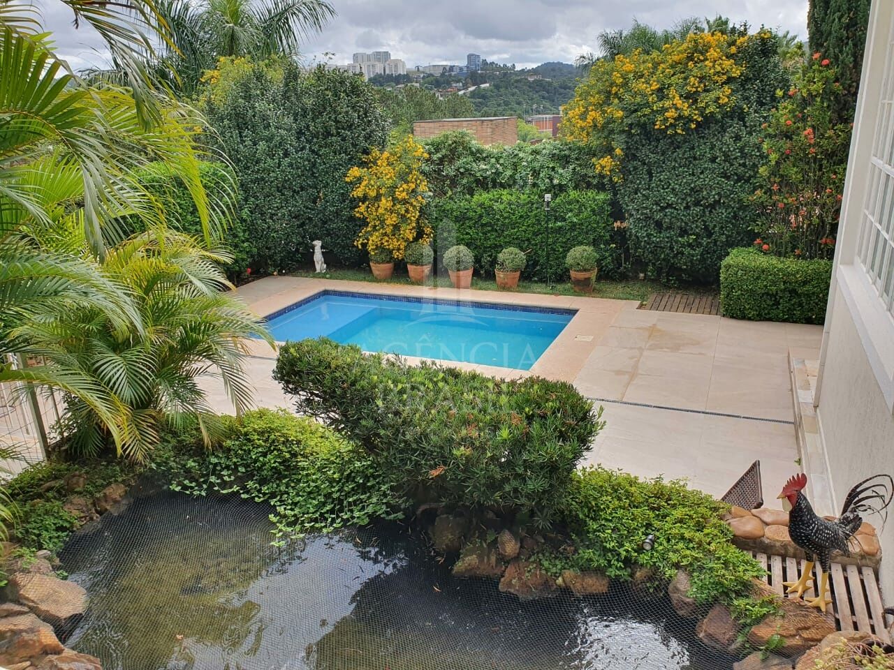 O destaque fica por conta da piscina com lago integrado, que se harmoniza com uma área verde exuberante, criando um ambiente único, acolhedor e exclusivo, perfeito para momentos de lazer e contemplação.