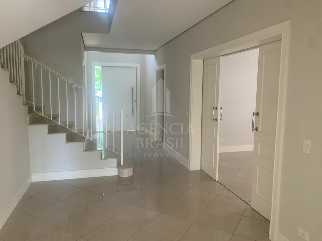 A casa dispõe de 04 suítes, escritório, e amplas salas, sendo uma delas com lareira, que conferem conforto e elegância aos ambientes.