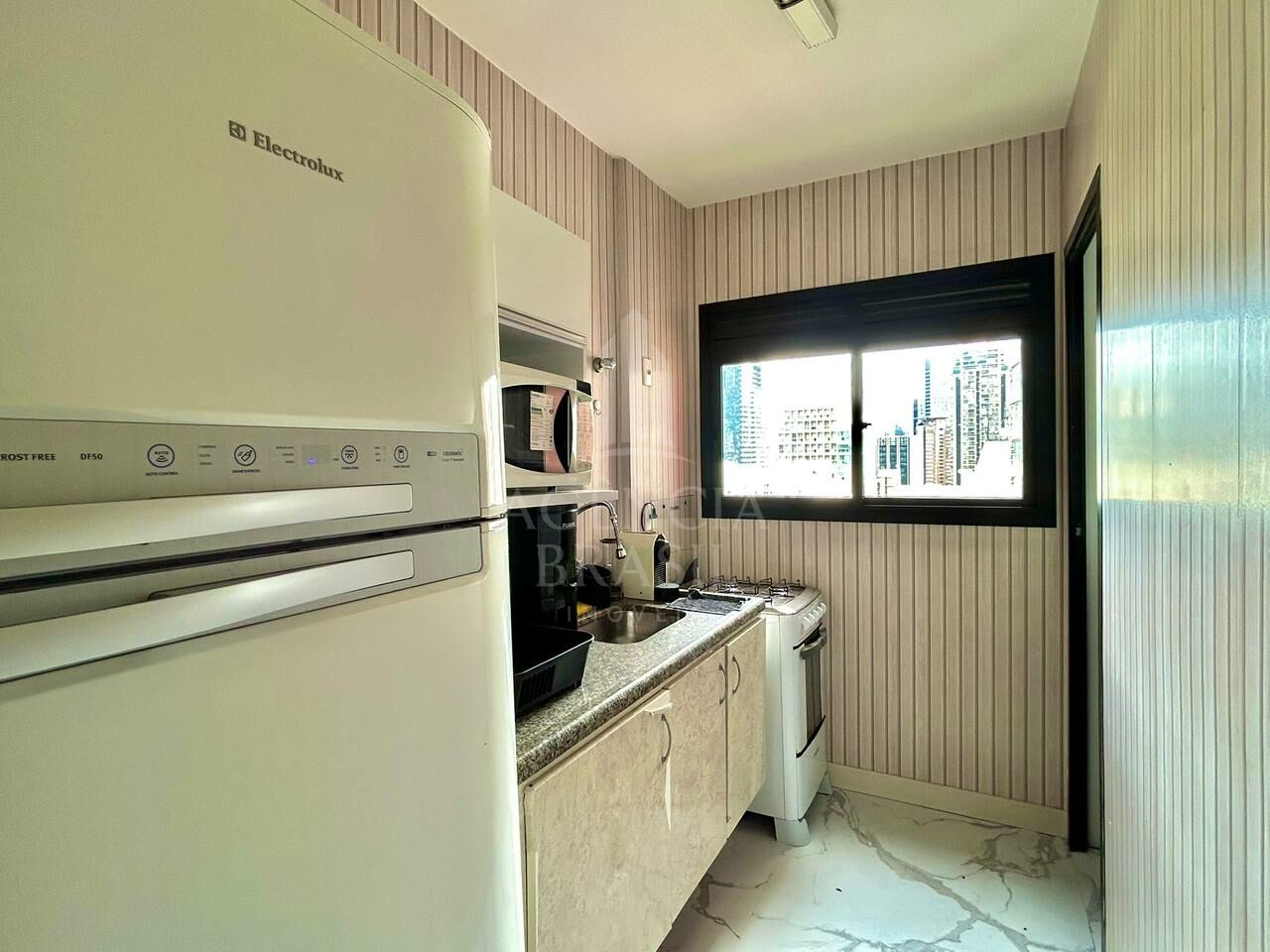 Flat totalmente mobiliado, localizado no Mercure São Paulo Berrini, com 2 suítes, varanda, cozinha completa e área de serviço com máquina de lavar. Os quartos contam com camas de casal, armários planejados e banheiros com aquecimento a gás. O imóvel dispõe ainda de serviço de quarto, ideal para quem busca praticidade no dia a dia ou investimento com renda.
