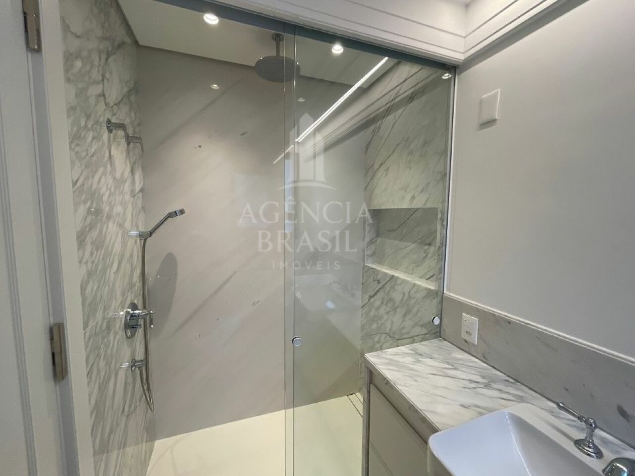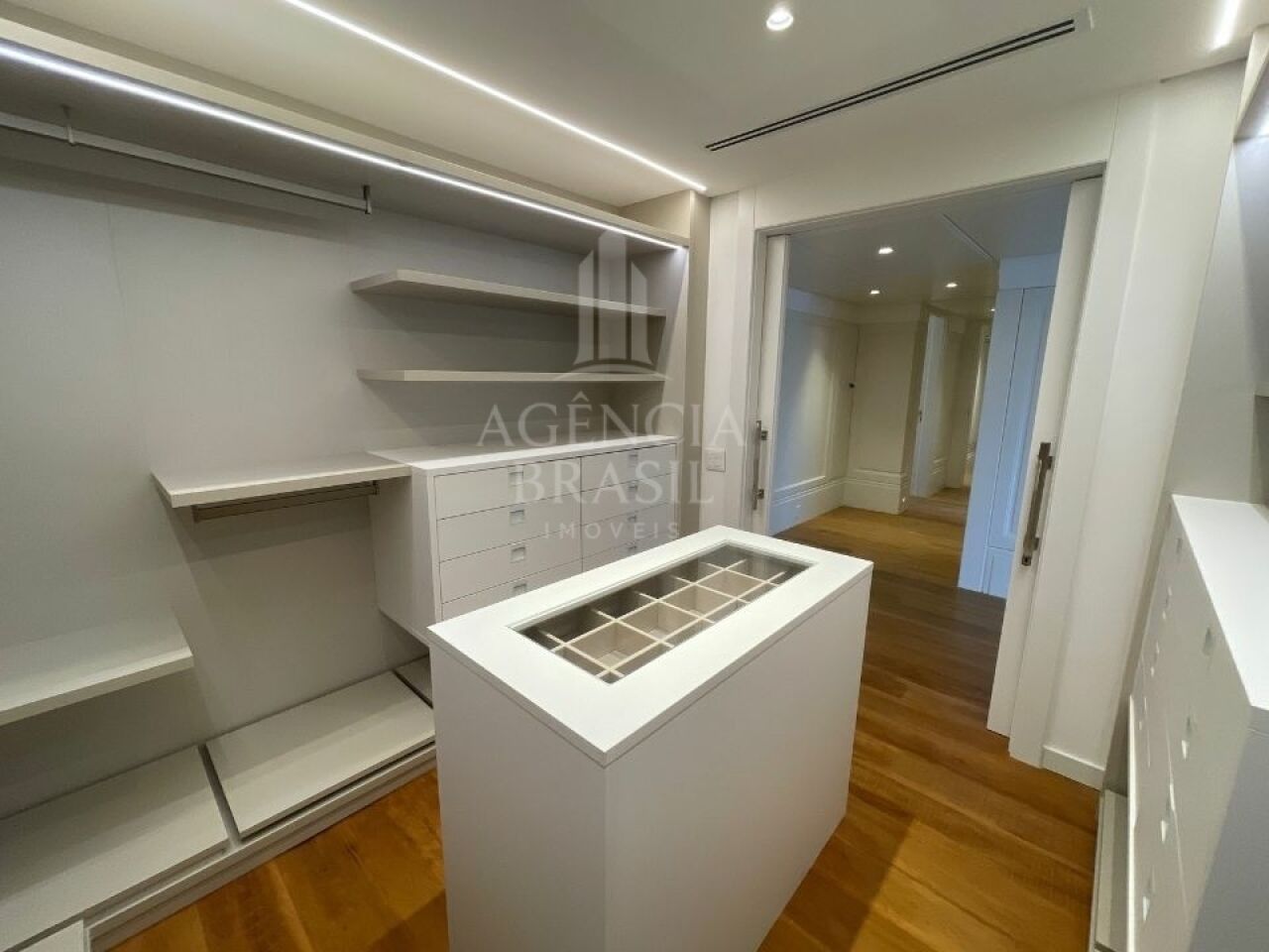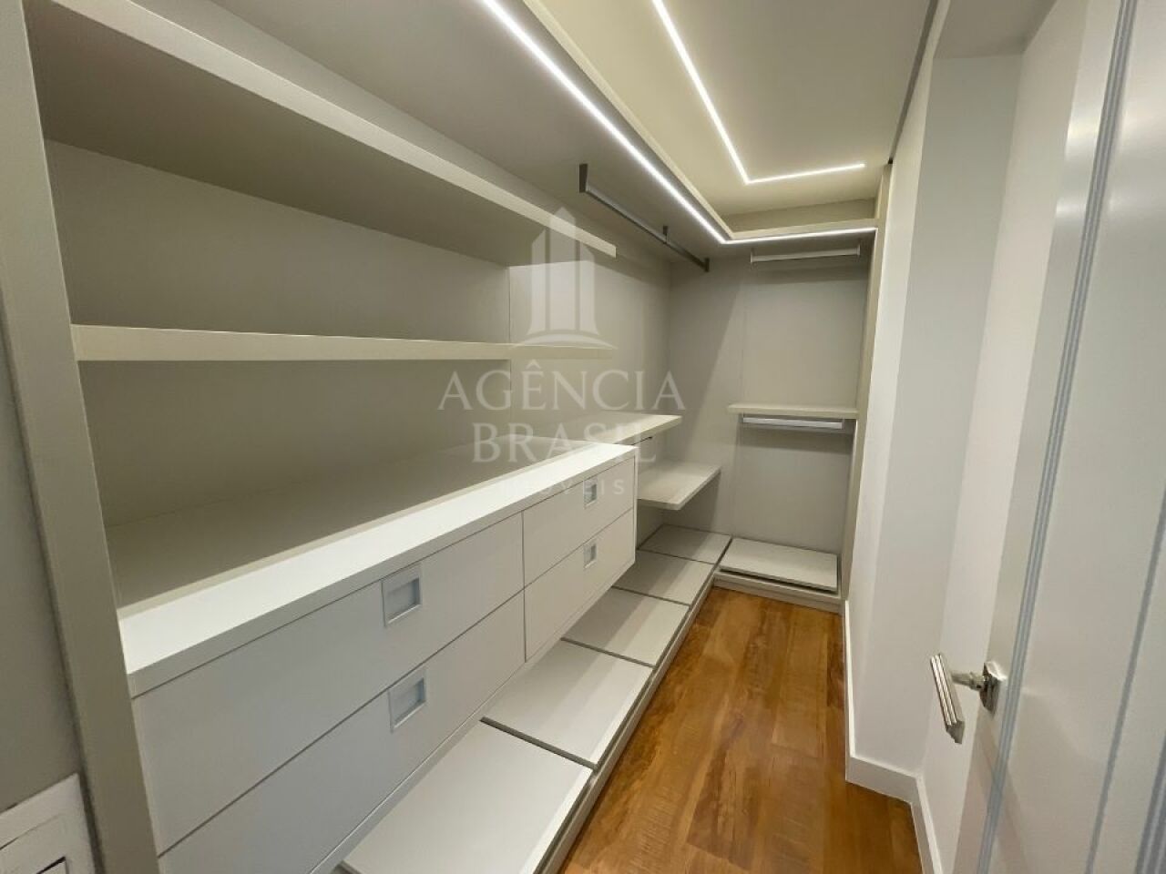 4 suítes generosas, cada uma com armários planejados e banheiros de alto padrão.